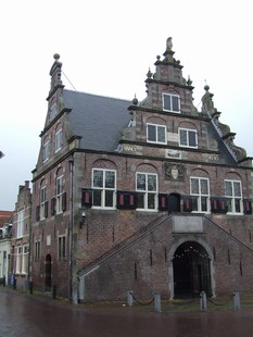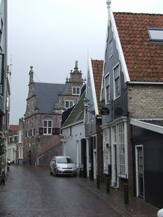 Mooie huisjes en andere gebouwen in De Rijp! Een smalle dorpsstraat, waar auto's elkaar nauwelijks kunnen passeren.