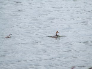 zien een moederfuut met jong zwemmen, waarna de route weer een stukje
