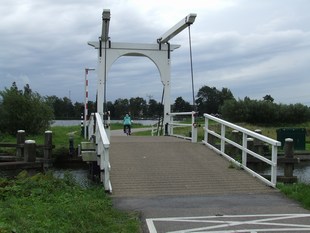 de brug met een schutsluisje gaan we linksaf en zo wandelen we om 16:05